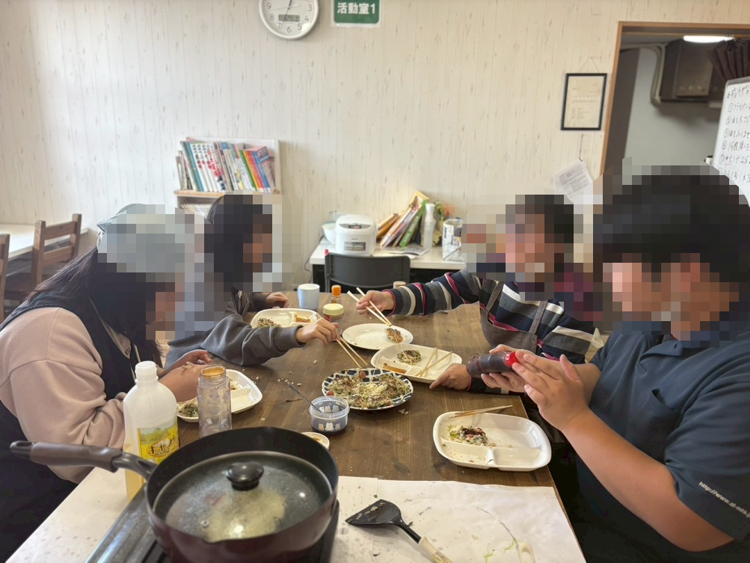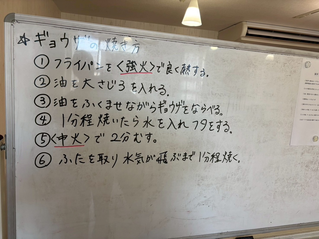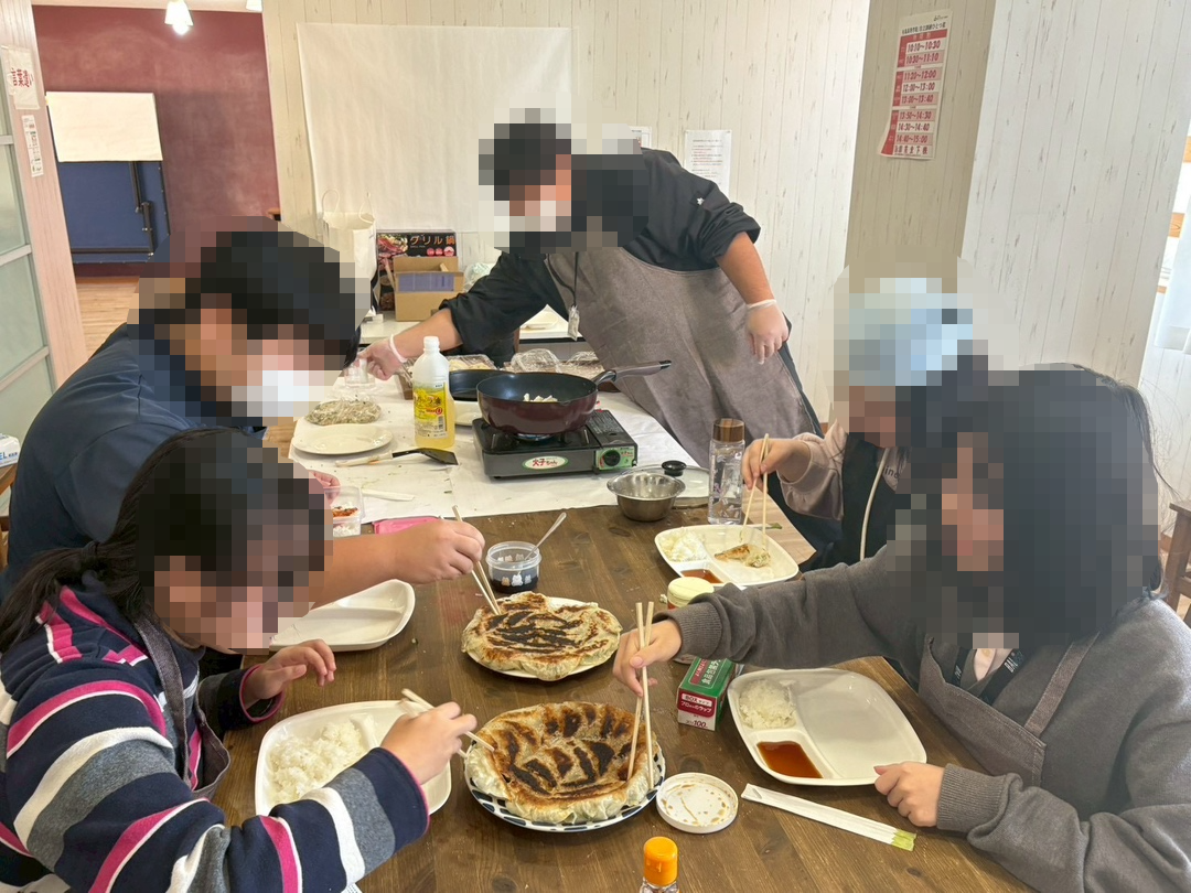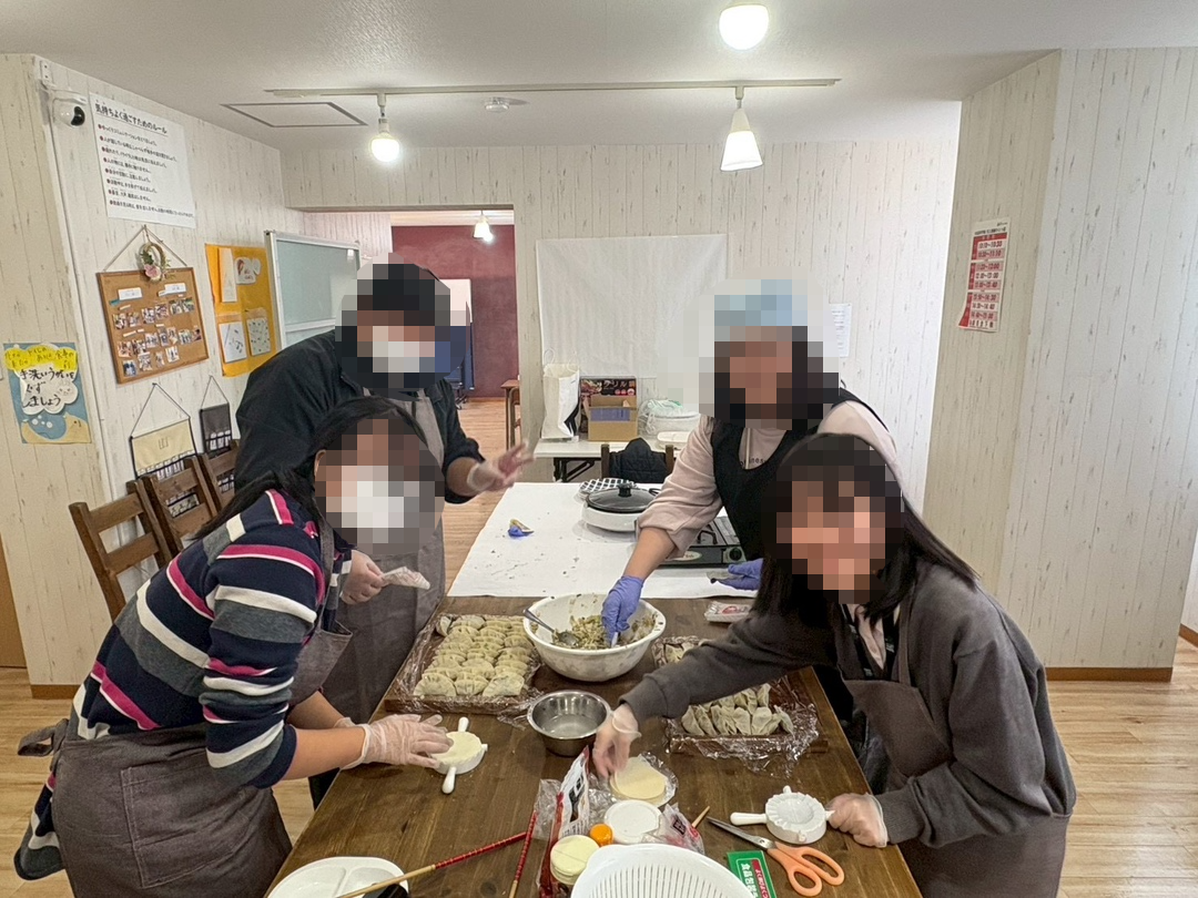 お互いに助け合いながら作りました。餃子を包むのが初めての利用者さんもいましたが、餃子を包むお助けアイテムを利用して、包むことができました。