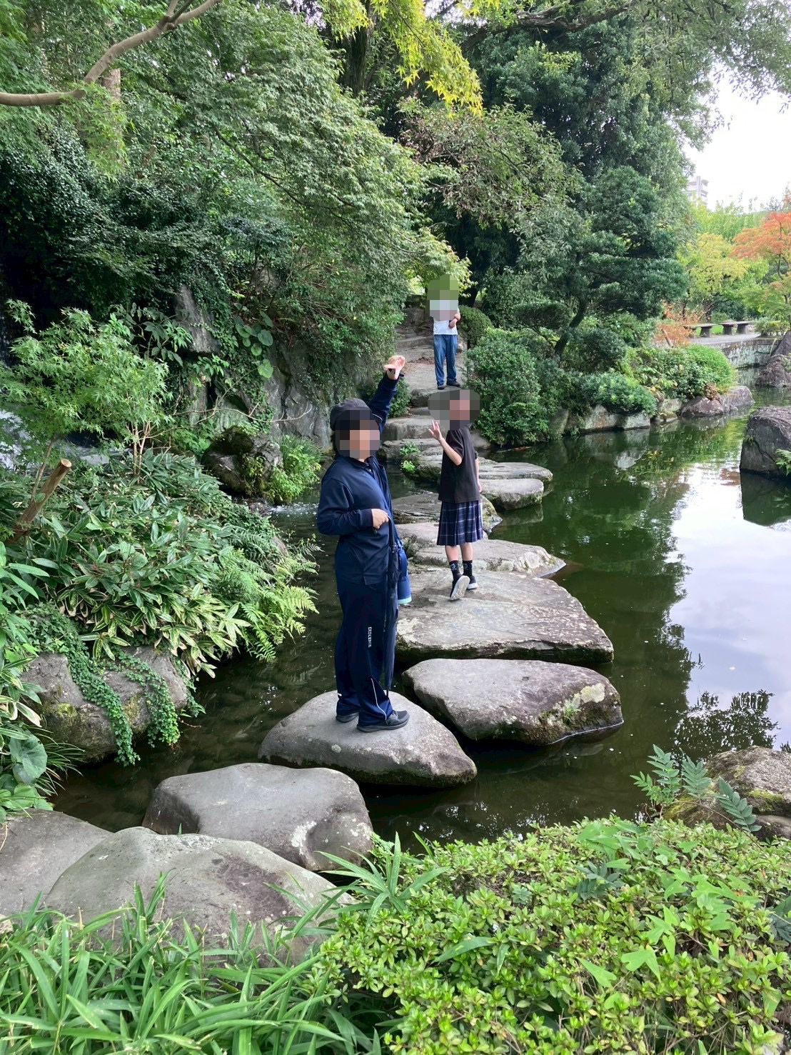 石橋文化センターにつくと、散策チームと鯉に餌をあげるチーム(好きは方)に分かれてそれぞれ楽しみました。チームで動くときには、『単独行動しない』という約束をして行動します。今月は、川崎町でのスクーリングもありますので、チームで動く、ルールを守るのは、とても大切なことです。