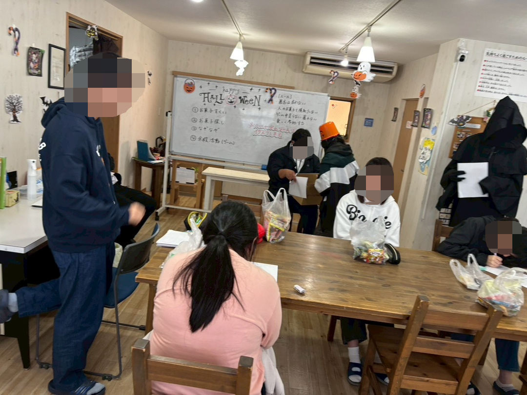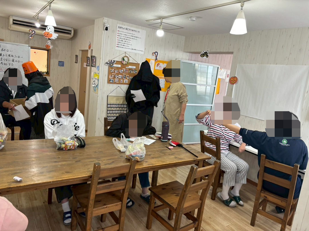なぞなぞは、むずかしかったところは、利用者さん同士で助け合う場面もあり、笑顔と笑いに包まれたハロウィンパーティーになりました!