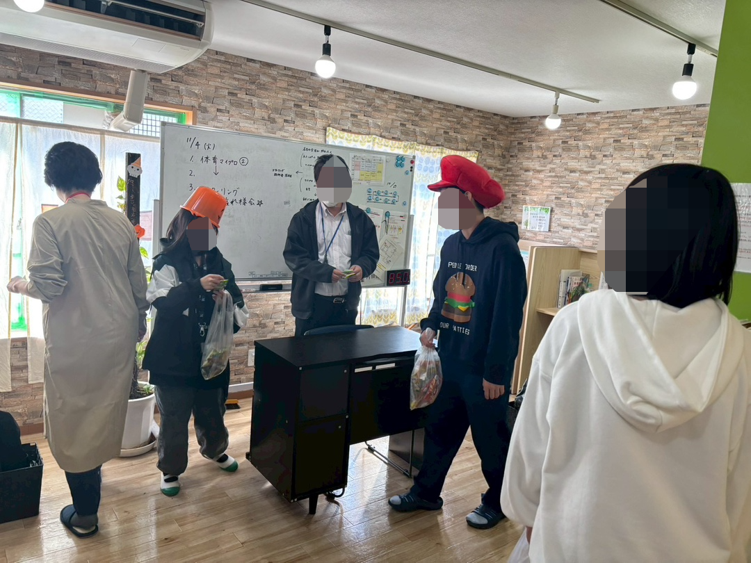 いつもの活動室に、ハロウィンの飾りつけをして、音楽をかけて、利用者さんも仮装してしてきてくれたり、グッズを持ってきてくれたり.......☆